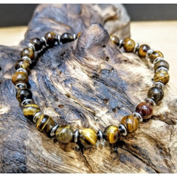 BRACCIALE CON ELASTICO TAGLIA M REALIZZATO CON OCCHIO DI TIGRE ED ACCIAIO DIMENSIONI PIETRE 6MM CIRCA OGNI PIETRA E' UN PEZZO UNICO, PERTANTO FORME, VENATURE, SFUMATURE, MISURE E PESO POSSONO DIFFERIRE LEGGERMENTE DA QUELLE IN FOTO. TAGLIA S: CIRCONFERENZA 18 CM CIRCA TAGLIA M: CIRCONFERENZA 20 CM CIRCA TAGLIA L: CIRCONFERENZA 22 CM CIRCA