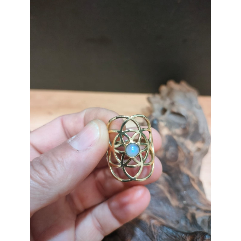 ANELLO REGOLABILE IN OTTONE CON PIETRA NATURALE DI LABRADORITE BIANCA