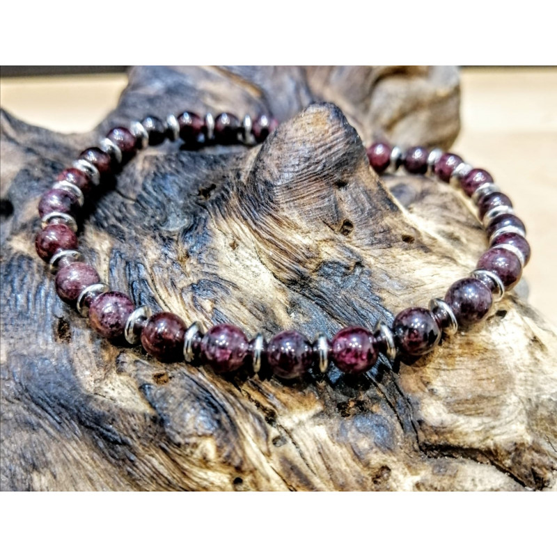 BRACCIALE CON ELASTICO TAGLIA S REALIZZATO CON GRANATO ED ACCIAIO