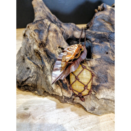 COLLANA FOGLIE RAME OTTONE E CALCITE GIALLA