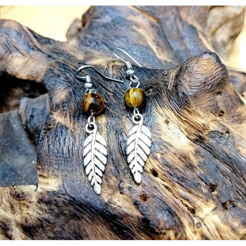 ORECCHINI OCCHIO DI TIGRE E PICCOLE FOGLIE