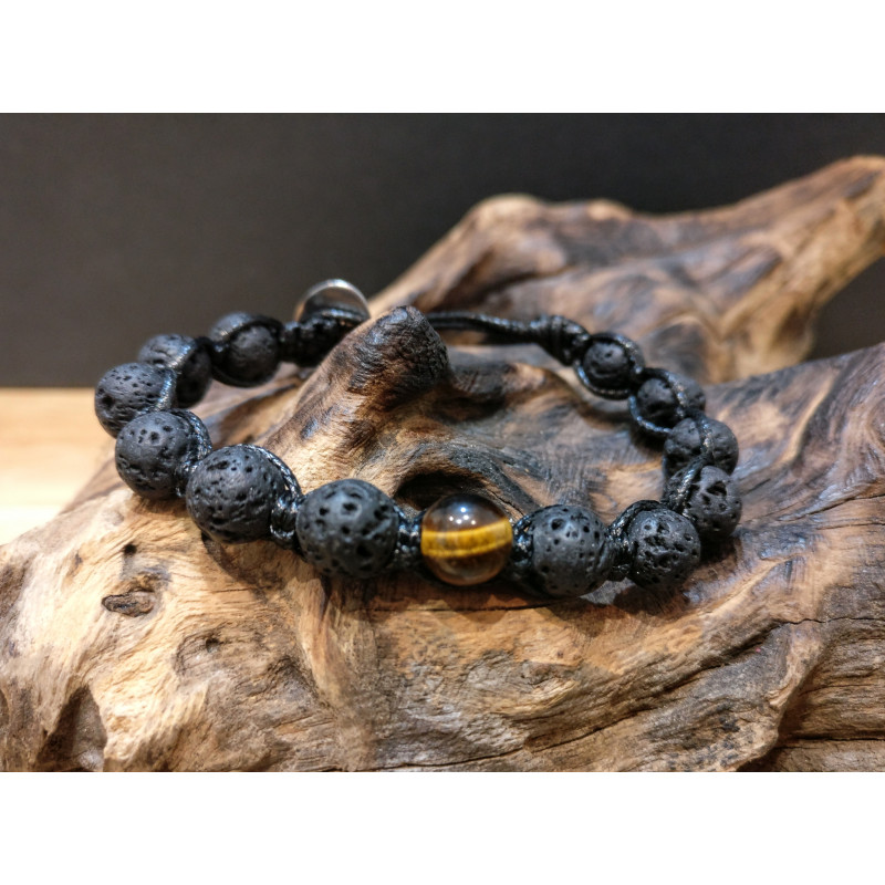 BRACCIALE REALIZZATO A MANO, CON PIETRE LAVICHE E OCCHIO DI TIGRE